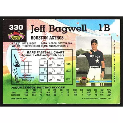 This is a 1992 Stadium Club Jeff Bagwell baseball card. The card is #330 and pictures show condition.
