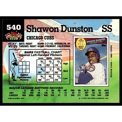 This is a 1992 Stadium Club Shawon Dunston baseball card. The card is #540 and pictures show condition.