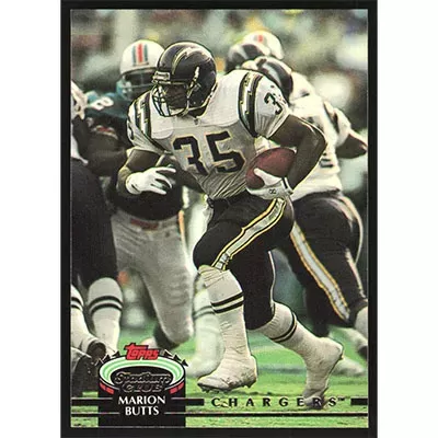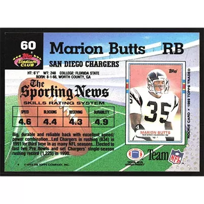 This is a 1992 Stadium Club Marion Butts football card. The card is #60 and pictures show condition.