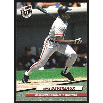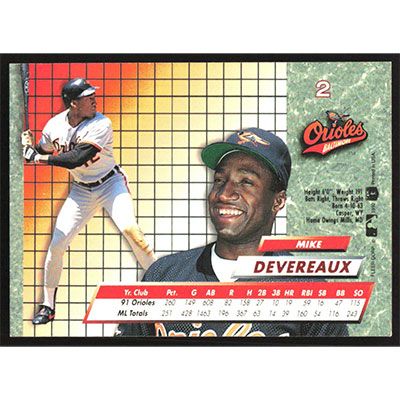 This is a 1992 Ultra Mike Devereaux baseball card. The card is #2 and pictures show condition.