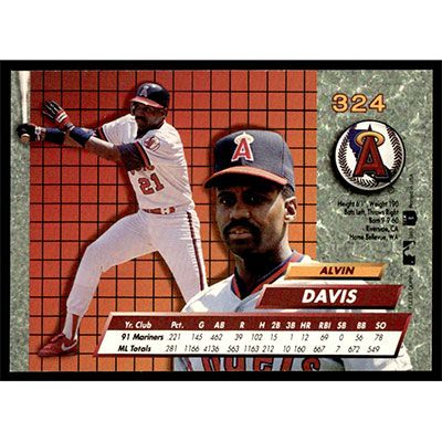 This is a 1992 Ultra Alvin Davis baseball card. The card is #324 and pictures show condition.