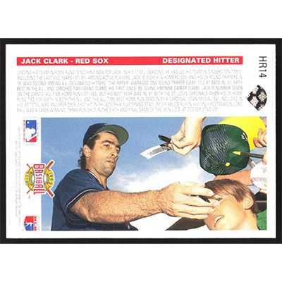 This is a 1992 Upper Deck Home Run Heroes Jack Clark baseball card. The card is #HR14 and pictures show condition.