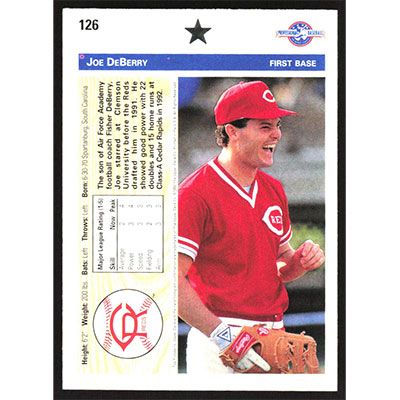 This is a 1992 Upper Deck Minors Joe DeBerry baseball card. The card is #126 and pictures show condition.