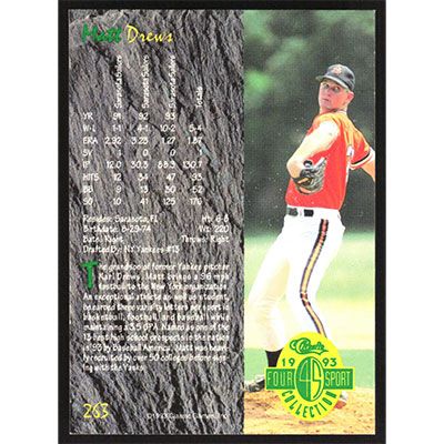 This is a 1993 Classic Four Sport Matt Drews baseball card. The card is #263 and pictures show condition.
