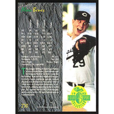 This is a 1993 Classic Four Sport Alan Benes baseball card. The card is #270 and pictures show condition.