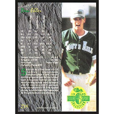 This is a 1993 Classic Four Sport Dan Ehler baseball card. The card is #279 and pictures show condition.
