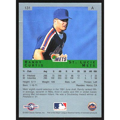 This is a 1993 Classic/Best Randy Curtis baseball card. The card is #131 and pictures show condition.