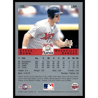 This is a 1993 Classic/Best Steve Dunn baseball card. The card is #155 and pictures show condition.