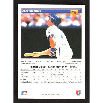 This is a 1993 Donruss Jeff Conine baseball card. The card is #101 and pictures show condition.