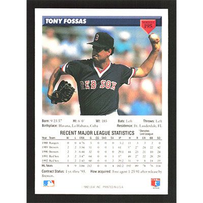 This is a 1993 Donruss Tony Fossas baseball card. The card is #195 and pictures show condition.