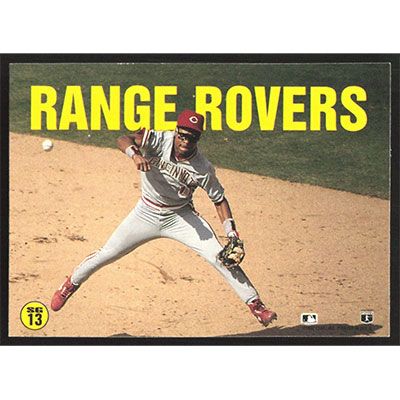 This is a 1993 Donruss Spirit of the Game Greg Gagne and Barry Larkin Range Rovers baseball card. The card is #SG13 and pictures show condition. Team(s): Minnesota Twins/Cincinnati Reds