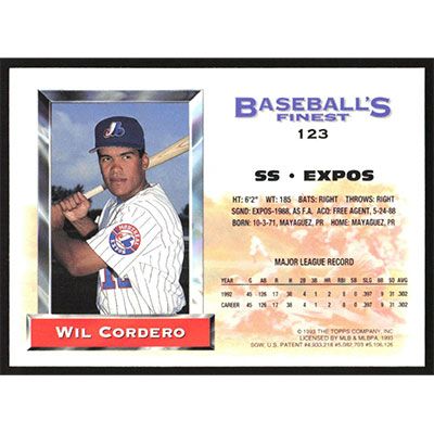 This is a 1993 Finest Wil Cordero baseball card. The card is #123 and pictures show condition.
