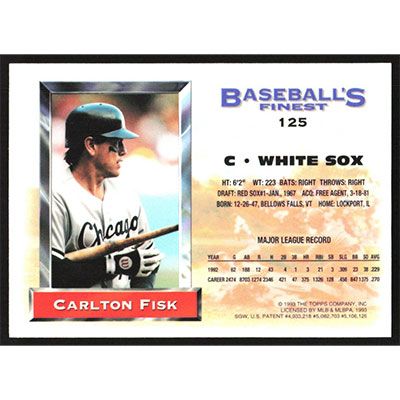 This is a 1993 Finest Carlton Fisk baseball card. The card is #125 and pictures show condition.
