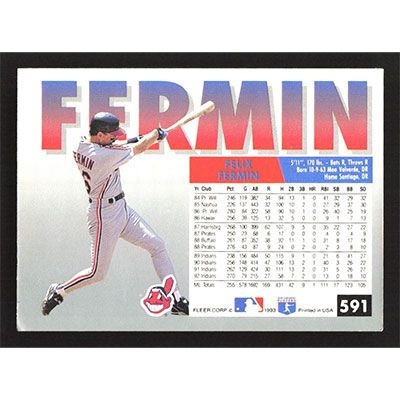 This is a 1993 Fleer Felix Fermin baseball card. The card is #591 and pictures show condition.