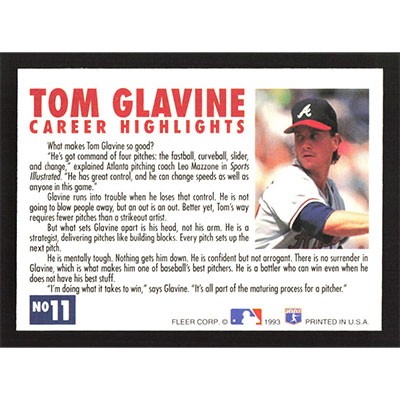 This is a 1993 Fleer Tom Glavine Career Highlights Tom Glavine baseball card. The card is #11 and pictures show condition.