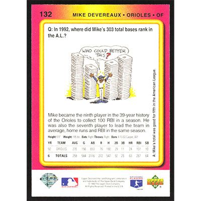 This is a 1993 Fun Pack Mike Devereaux baseball card. The card is #132 and pictures show condition.