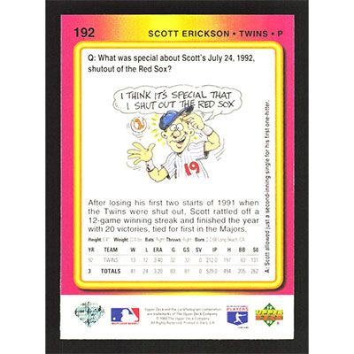 This is a 1993 Fun Pack Scott Erickson baseball card. The card is #192 and pictures show condition.