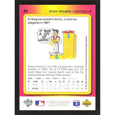 This is a 1993 Fun Pack Doug Drabek baseball card. The card is #46 and pictures show condition.