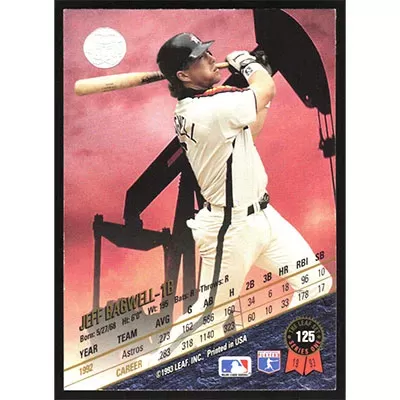 This is a 1993 Leaf Jeff Bagwell baseball card. The card is #125 and pictures show condition.