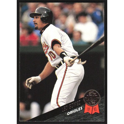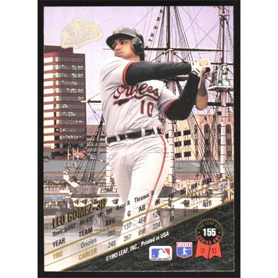 This is a 1993 Leaf Leo Gomez baseball card. The card is #155 and pictures show condition.