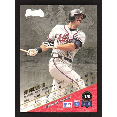 This is a 1993 Leaf Sid Bream baseball card. The card is #178 and pictures show condition.
