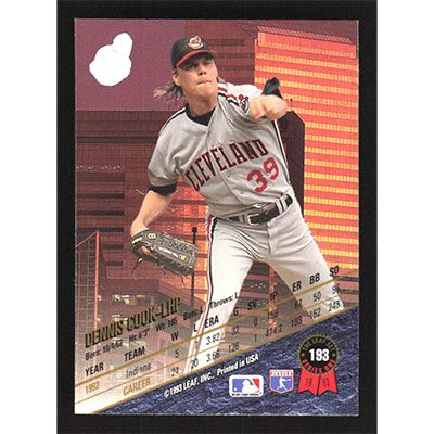 This is a 1993 Leaf Dennis Cook baseball card. The card is #193 and pictures show condition.