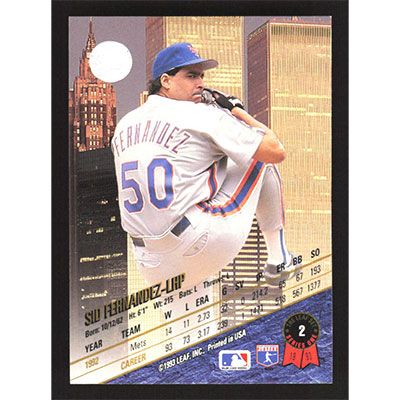 This is a 1993 Leaf Sid Fernandez baseball card. The card is #2 and pictures show condition.