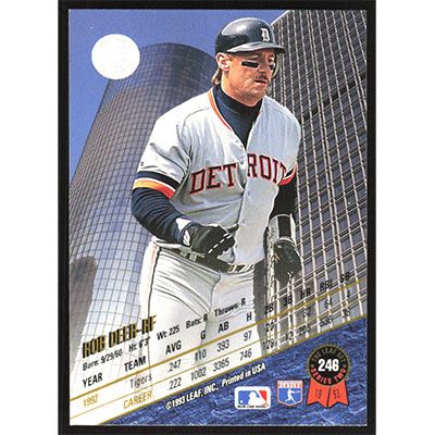 This is a 1993 Leaf Rob Deer baseball card. The card is #246 and pictures show condition.