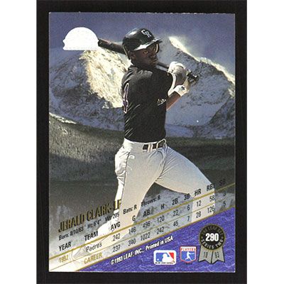 This is a 1993 Leaf Jerald Clark baseball card. The card is #290 and pictures show condition.