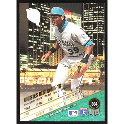 This is a 1993 Leaf Orestes Destrade baseball card. The card is #304 and pictures show condition.
