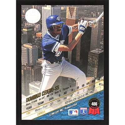 This is a 1993 Leaf Domingo Cedeno baseball card. The card is #486 and pictures show condition.