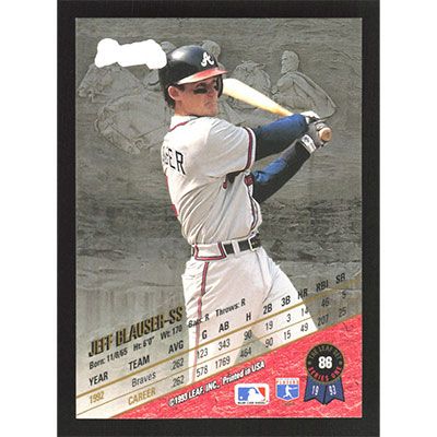 This is a 1993 Leaf Jeff Blauser baseball card. The card is #86 and pictures show condition.