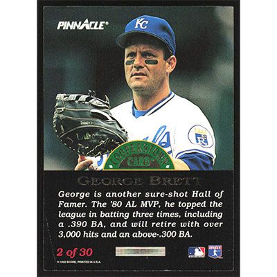 This is a 1993 Pinnacle Cooperstown George Brett baseball card. The card is #2 and pictures show condition.