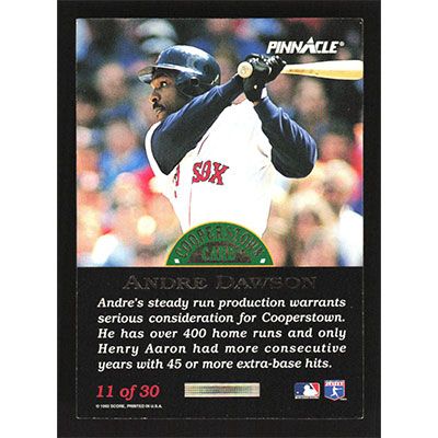 This is a 1993 Pinnacle Cooperstown Card Andre Dawson baseball card. The card is #11 and pictures show condition.