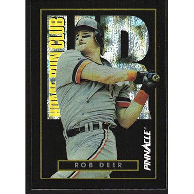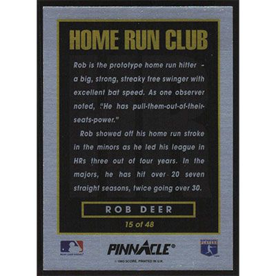 This is a 1993 Pinnacle Home Run Club Rob Deer baseball card. The card is #15 and pictures show condition.