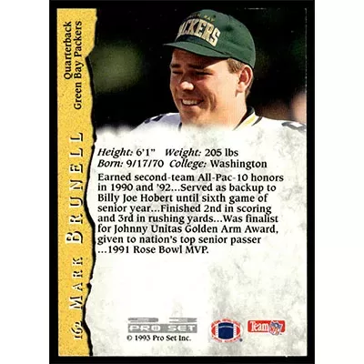 This is a 1993 Pro Set Mark Brunell football card. The card is #162 and pictures show condition.