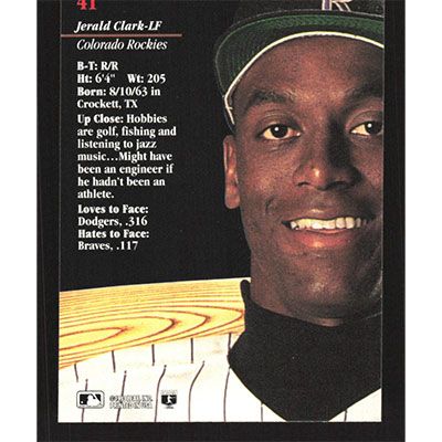 This is a 1993 Studio Jerald Clark baseball card. The card is #41 and pictures show condition.
