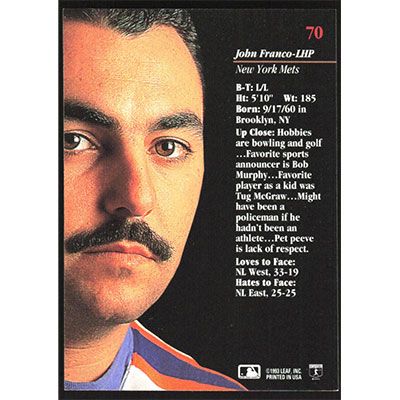 This is a 1993 Studio John Franco baseball card. The card is #70 and pictures show condition.