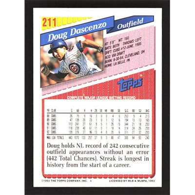 This is a 1993 Topps Doug Dascenzo baseball card. The card is #211 and pictures show condition.