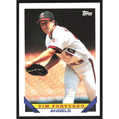 This is a 1993 Topps Tim Fortugno baseball card. The card is #320 and pictures show condition.