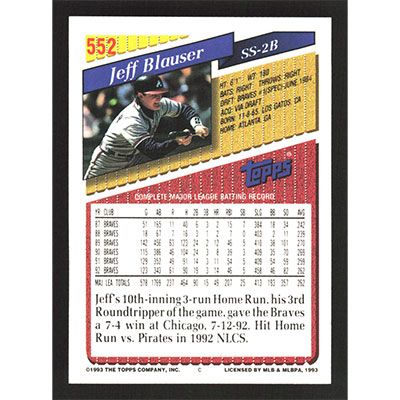 This is a 1993 Topps Jeff Blauser baseball card. The card is #552 and pictures show condition.