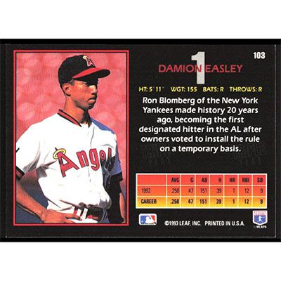 This is a 1993 Triple Play Damion Easley baseball card. The card is #103 and pictures show condition.