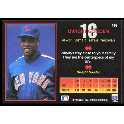 This is a 1993 Triple Play Dwight Gooden baseball card. The card is #146 and pictures show condition.