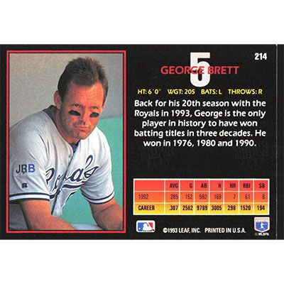 This is a 1993 Triple Play George Brett baseball card. The card is #214 and pictures show condition.