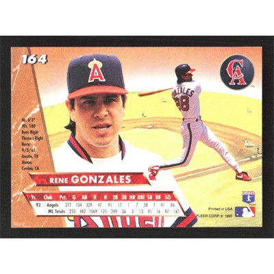 This is a 1993 Ultra Rene Gonzales baseball card. The card is #164 and pictures show condition.
