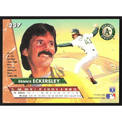 This is a 1993 Ultra Dennis Eckersley baseball card. The card is #257 and pictures show condition.