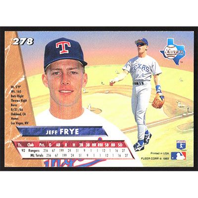 This is a 1993 Ultra Jeff Frye baseball card. The card is #278 and pictures show condition.