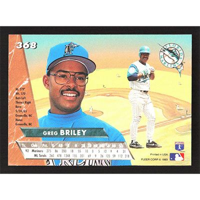 This is a 1993 Ultra Greg Briley baseball card. The card is #368 and pictures show condition.