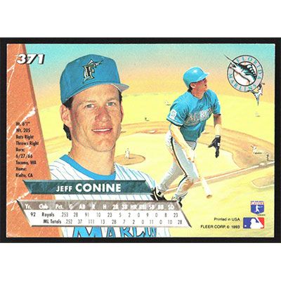 This is a 1993 Ultra Jeff Conine baseball card. The card is #371 and pictures show condition.