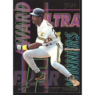 This is a 1993 Ultra Award Winners Barry Bonds baseball card. The card is #24 and pictures show condition.
